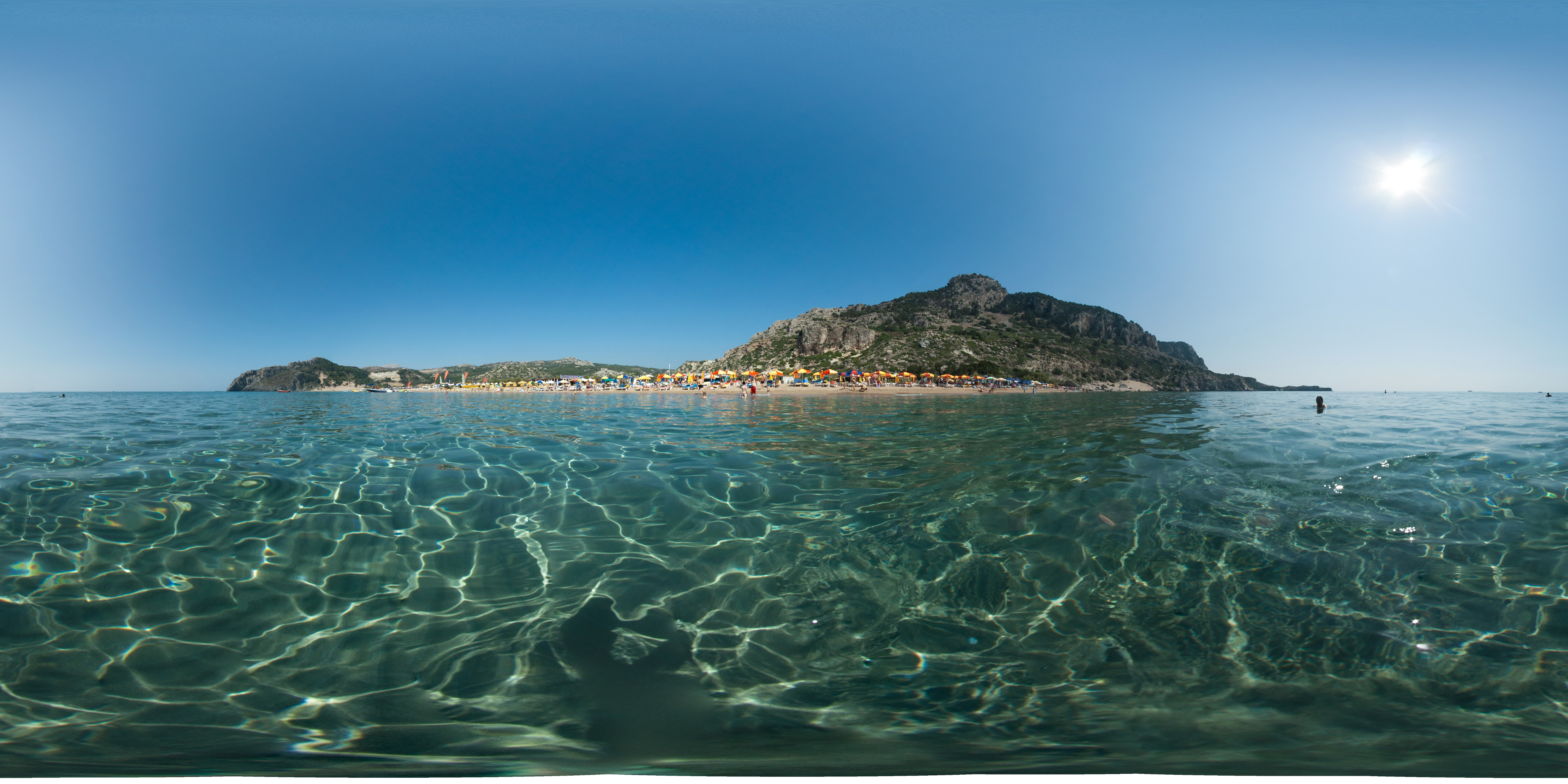 Zu Beginn meiner abenteuerlichen Experimente (ich glaube in 2009) kannte ich die Beugungsunschärfe noch nicht und blendete teilweise bis f/16 ab. Inzwischen wähle ich meist eine Blende zwischen zwischen 8 und 11. In dem Bereich bemerke ich keinen nennenswerten Schärfeunterschied. Nach Blende 11 lässt die Schärfe dann nach. Die Bilder für`s Tsambika-Pano hab ich mit f/9 gemacht (Fokus auf unendlich):Brauchst blende nicht höher als 8.0 einstellen , bereits bei 5,6 schärfentiefe ausreichend ist und die auflösung hoher wird. Entfernung um 3 - 5 m