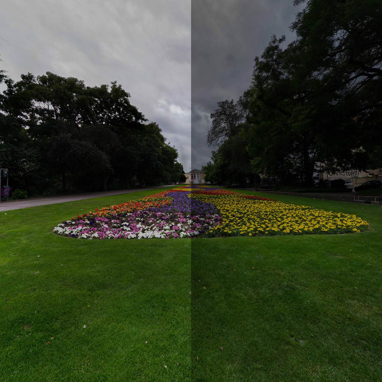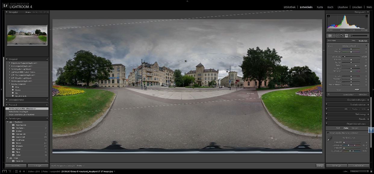 Ich mach das nur ganz selten, aber im Prinzip hab ich das mal nach der gleichen Idee gemacht. Ich habe das Equi geladen, die Leinwand auf doppelte Breite gezogen, und das Equi nochmal seitlich dran kopiert. Dann die Bearbeitung, danach den mittleren Teil des Bildes verwendet, also einfach links und rechts abgeschnitten. Der kritische Bereich wurde bei den Bearbeitungen gleichmäßig behandelt, weil die umgebenden Inhalte identisch waren, und deshalb gibt es bei der Rundansicht auch keine Absatzkante.... mach ich das immer so: