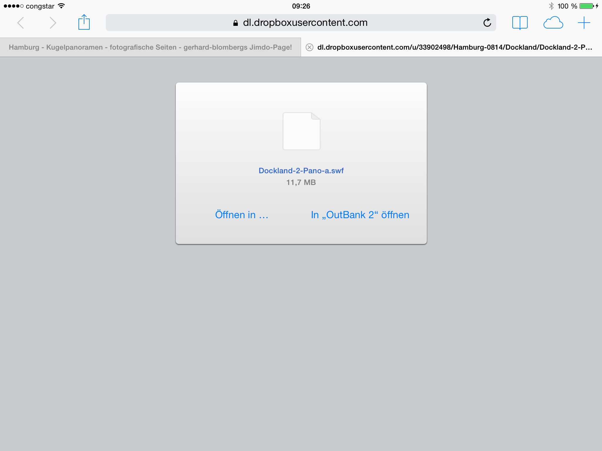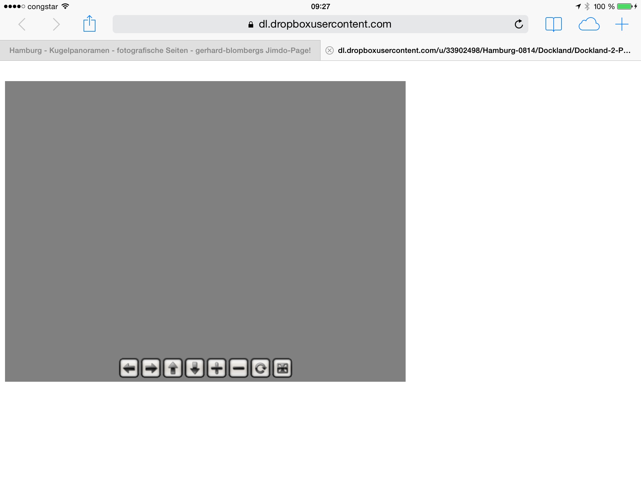 Weshalb das HTM5-Fenster nicht bildschirmfüllend dargestellt wird konnte ich nicht ergründen, - nach sehr langer Wartezeit wird immer ganz kurz nach dem grauen Fenster ein Bild angezeigt und sobald man es bewegen will stürzt der Browser ab. Auch nach einem Geräteneustart (iPad Mini II Retina 128GB) gleiches Ergebnis.