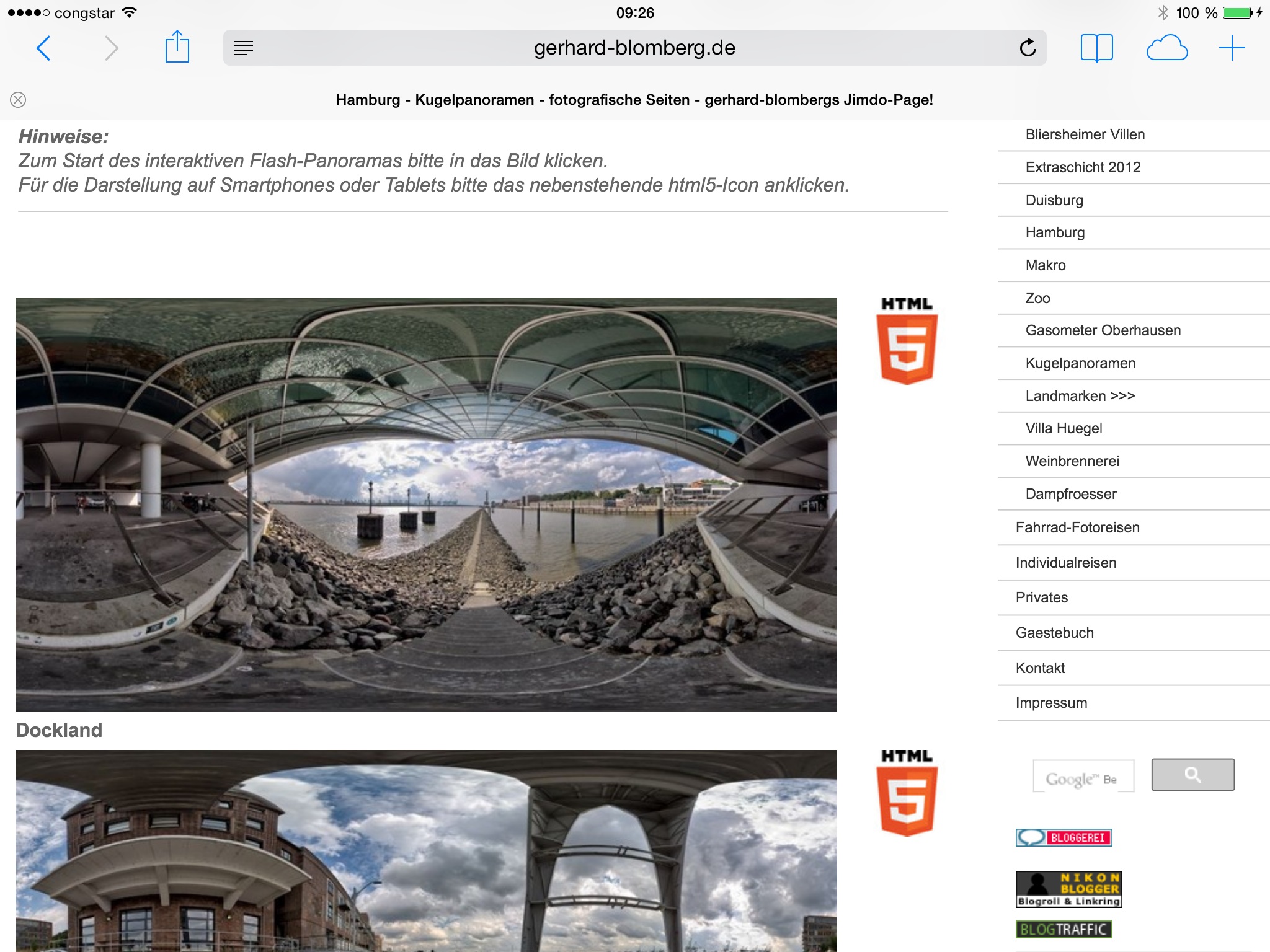 Erst als ich irgendwann auf das HTML-5-Icon klickte kam das Panorama. Selbsterklärend ist das nicht, - klickt doch jeder auf das Bild und denkt sich allerhöchstens: Hui, auch HTML5-Unterstützung. Prima! Naja, vielleicht bin auch nur ich so langsam, werd ja auch nicht jünger :-)