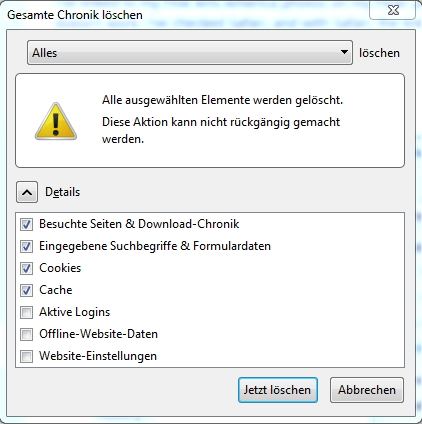 Dass sich in so ner Chronik mit der Zeit viel ansammelt ist nachvollziehbar, gerade bei dem Rechner an dem ich das grad durchgeführt hatte.