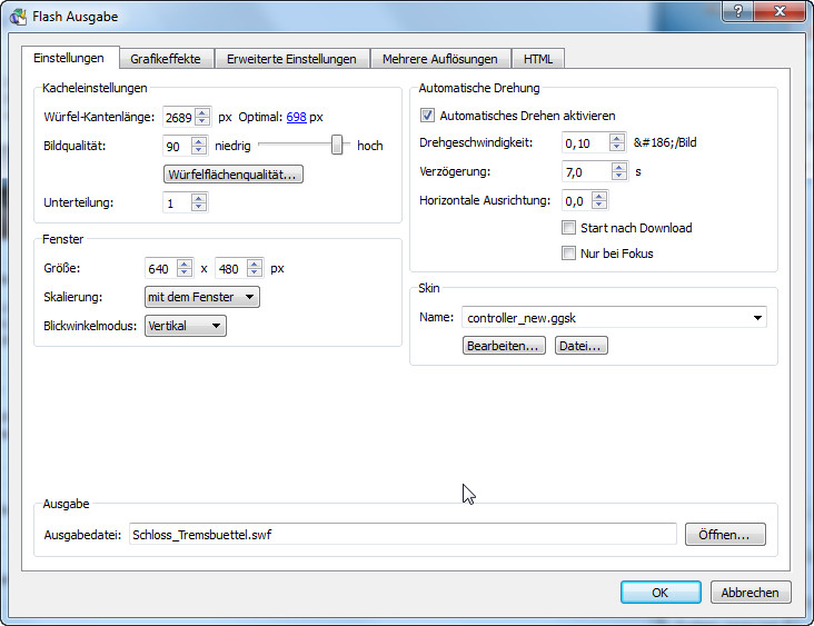 Meiner Erinnerung nach kannst du die Autorotation nur mit der Box "Start nach Download" ein wenig verzögern weil dann erst die Einzelkacheln geladen werden. Mir gefällt auch die Funktion "Horizontale Ausrichtung" sehr gut, hier sollte immer der gleiche Wert stehen wie bei der "Verzögerung" oben drüber.